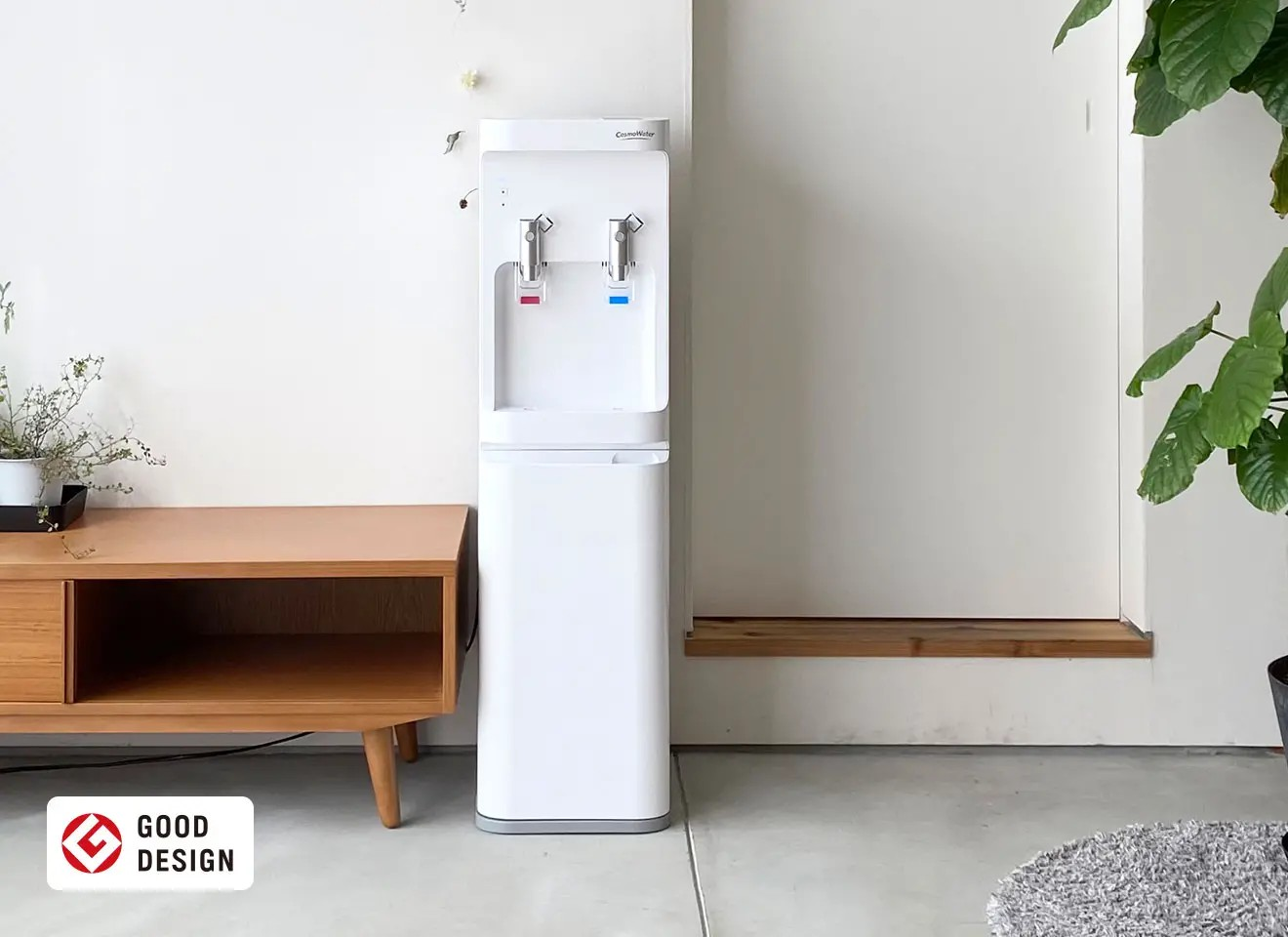 コスモウォーターの主力モデル「smartプラスNext」は、幅約30cmと非常にスリムな設計で、キッチンやリビングなどスペースが限られている場所にも設置しやすいのが特徴です。