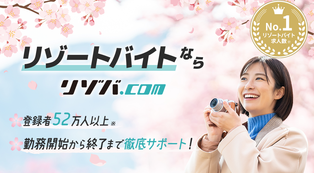 リゾバ.comは、全国47都道府県に対応している業界最大級のリゾートバイト求人サイトです。